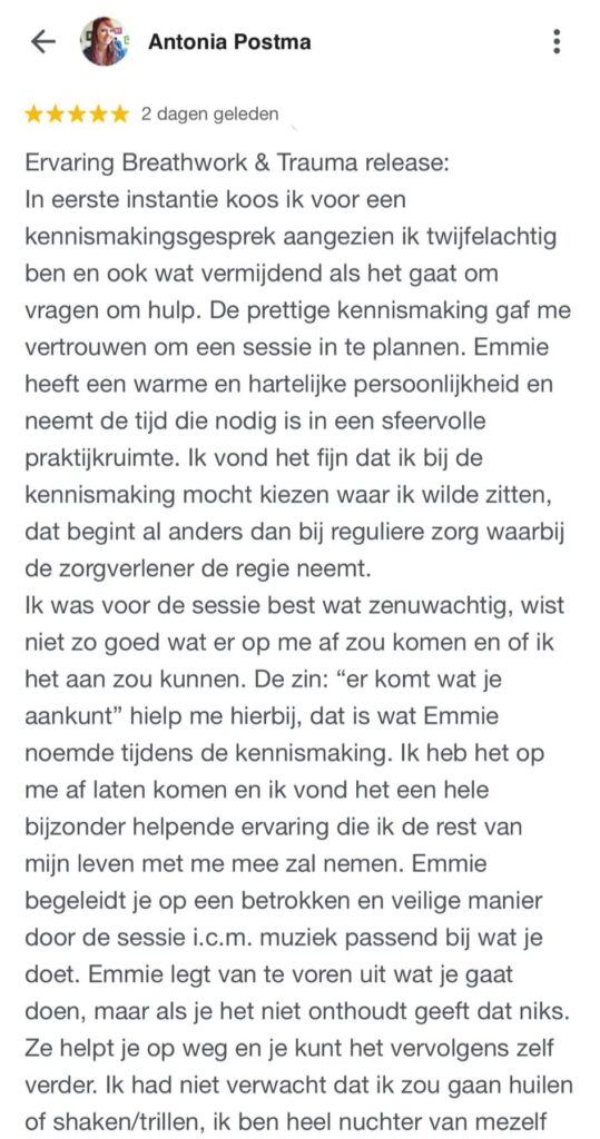 In een wereld vol stress en drukte, geloof ik dat ware kracht ligt in innerlijke rust, zelfliefde en bewustzijn. Mijn naam is Emmie Kranenburg, en ik ben sinds twee jaar actief als trauma-, stress- en ademcoach.