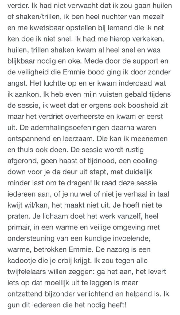 Review ingesproken door Janice nadat ze bij mij een sessie Breathwork & Trauma release heeft gevolgd
